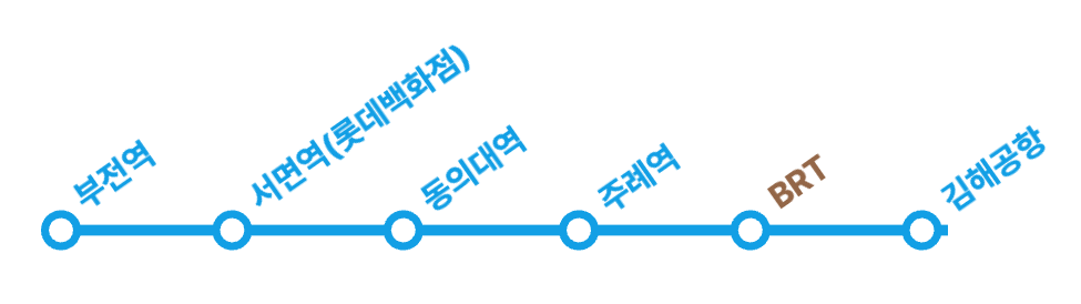 - 부전역 → 서면역(롯데백화점) → 동의대역 → 주례역 → BRT → 김해공항
