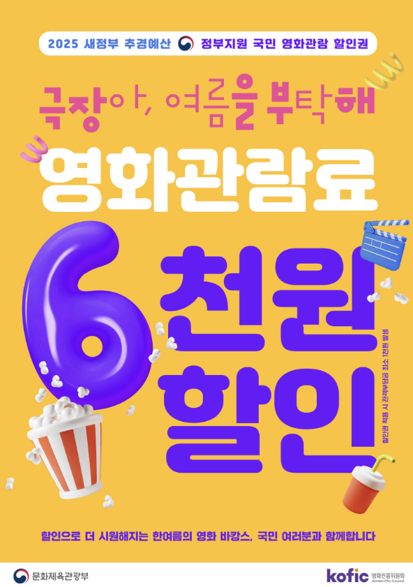 정부는 영화관 입장료 부담을 줄이기 위해 약 271억 원의 예산을 투입해 총 450만 장의 할인 쿠폰을 배포했습니다. 해당 쿠폰은 CGV, 롯데시네마, 메가박스, 씨네Q 등 주요 영화관 어디서든 사용 가능하며, 전 시간대 적용됩니다.
