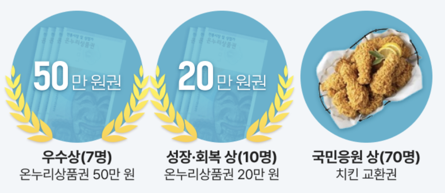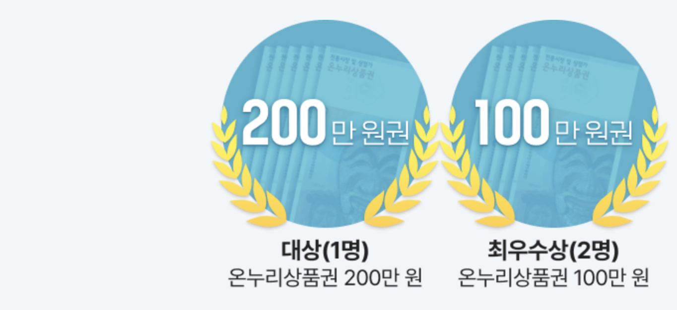 - 🥇 최우수상 (2명) - 온누리상품권 각 100만 원