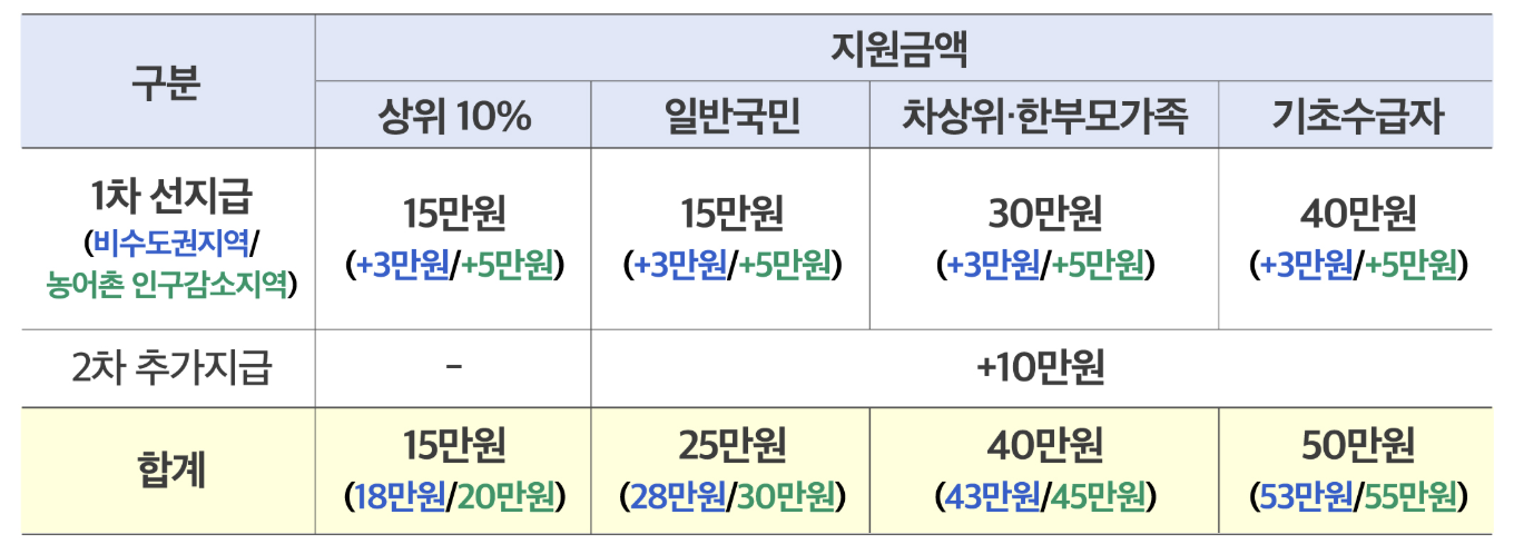 소득 구간별로 차등 지급되는 2차 소비쿠폰 금액은 다음과 같습니다. 특히 비수도권, 농어촌 인구감소지역일 경우 추가 혜택이 주어지니 지역도 함께 확인해보세요.