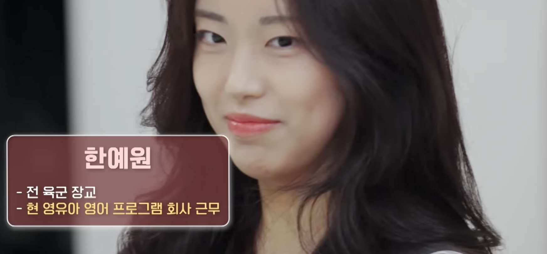 | 예원 | 교육회사 경영팀 | 전 육군 장교 |