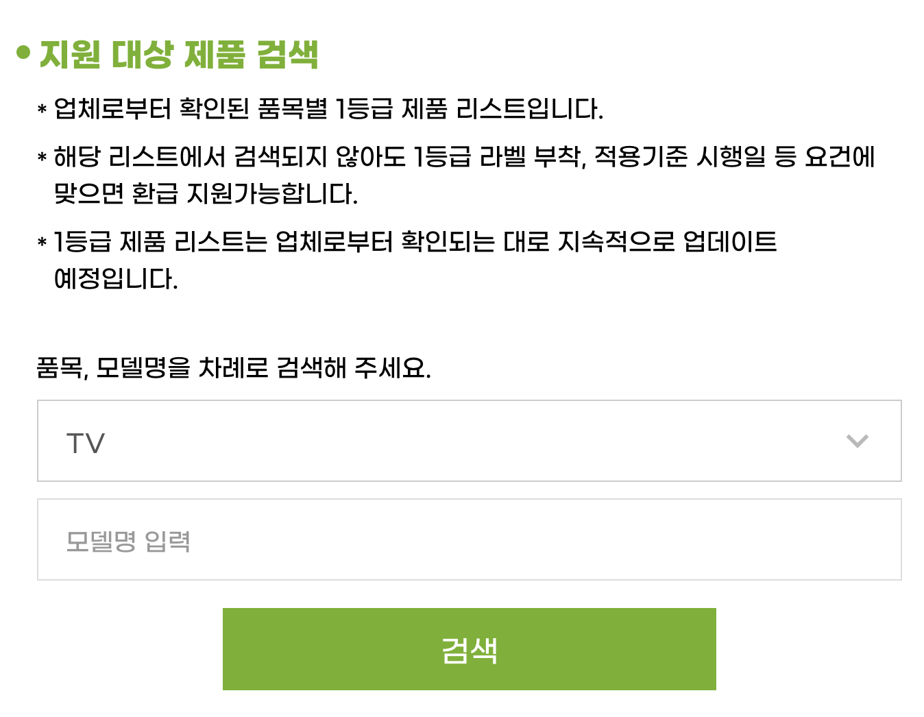 내가 쓰는 제품이 지원대상 제품인지 확인하려면 '으뜸효율 환급사업 홈페이지'에서 제품 검색 가능합니다.