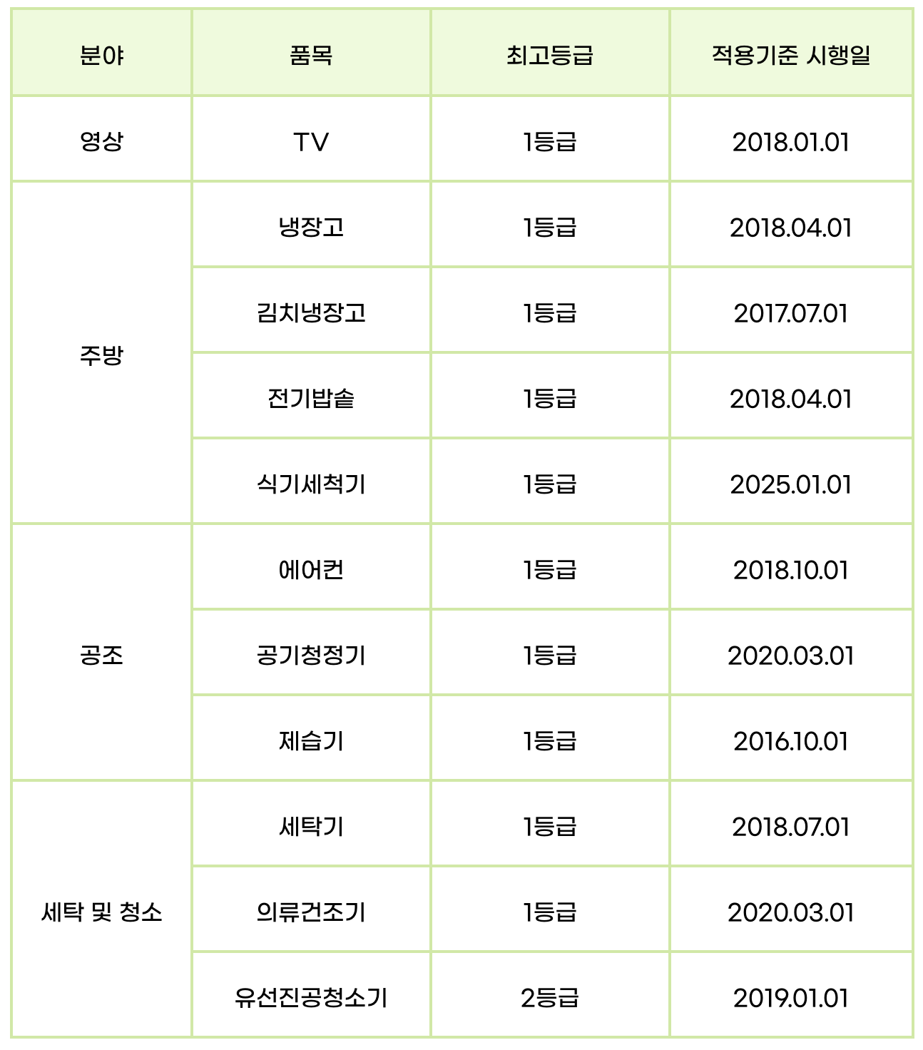 | 대상 품목 | TV, 냉장고, 전기밥솥, 식기세척기 등 11개 |
