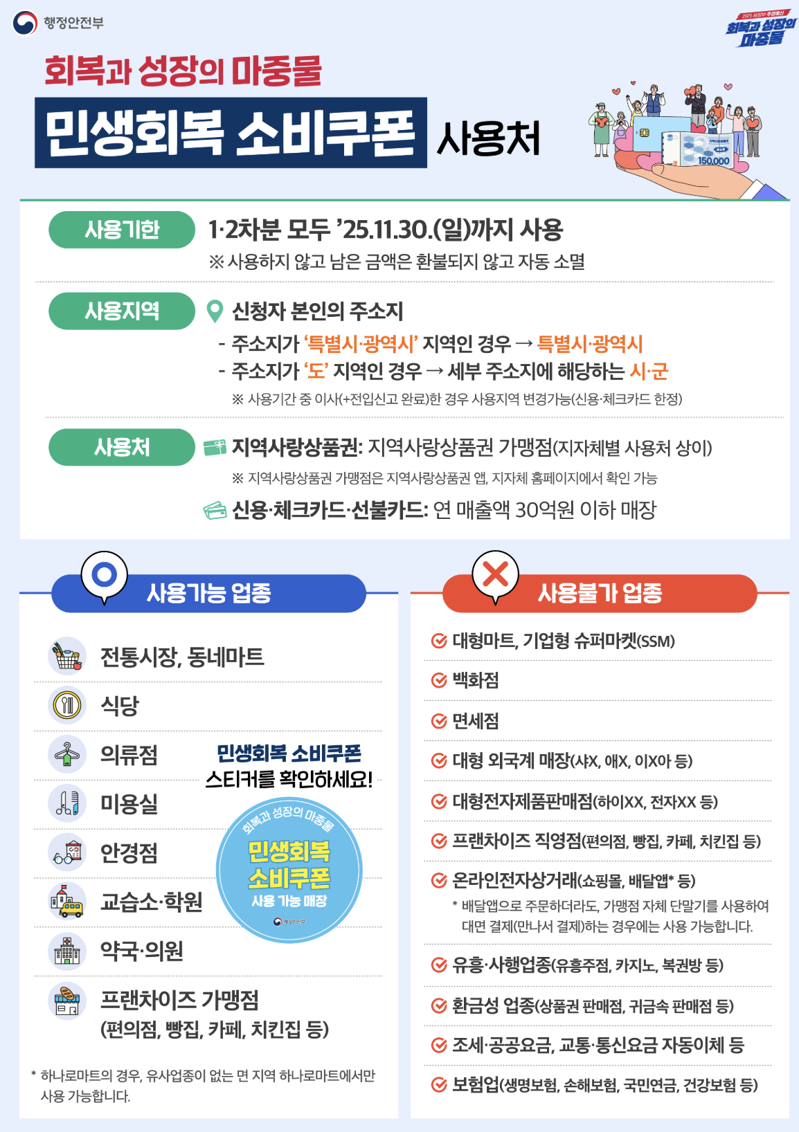 사용 전에 ‘소비쿠폰 사용 가능’ 스티커 또는 직원 확인을 꼭 받으세요!